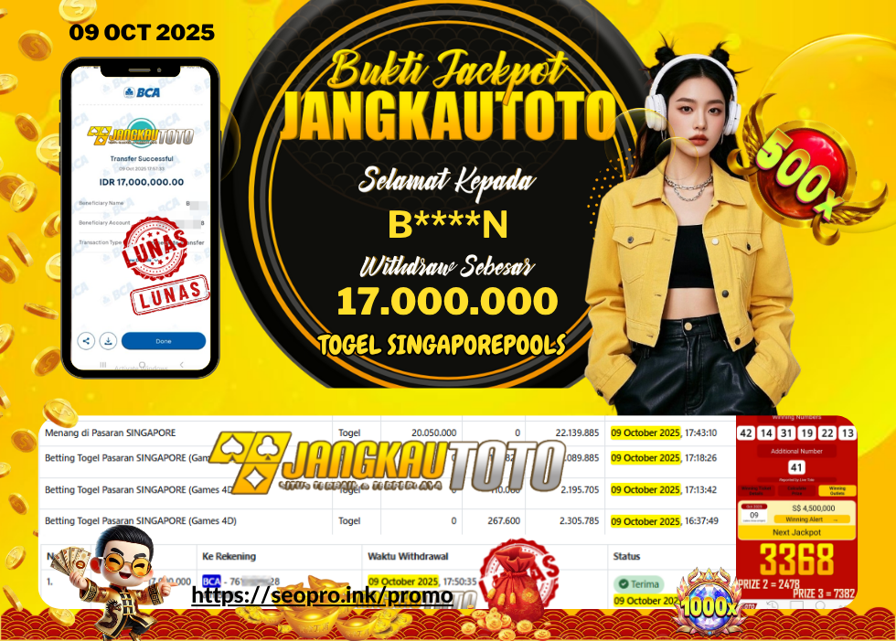 Kami mengucapkan Selamat kepada member setia JANGKAUTOTO Dengan Username B****N , Withdraw hasilk TOGEL SINGAPOREPOOLS Sebesar Rp.17.000.000,- Telah LUNAS diproses dengan BAIK dan BENAR ke REKENING yang terdaftar DI BO JANGKAUTOTO.