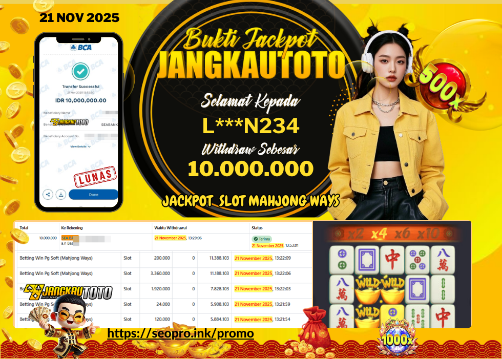 JANGKAUTOTO JACKPOT SLOT MAHJONG WAYS Rp. 10.000.000,-