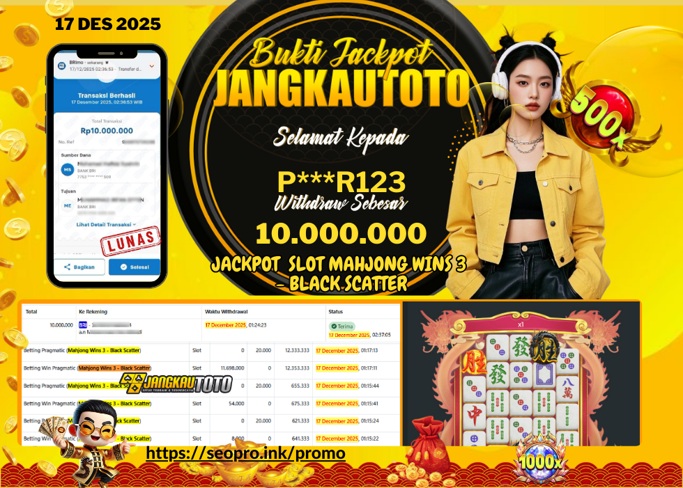 JANGKAUTOTO JACKPOT SLOT MAHJONG WINS 3 - BLACK SCATTER Rp.10.000.000,-