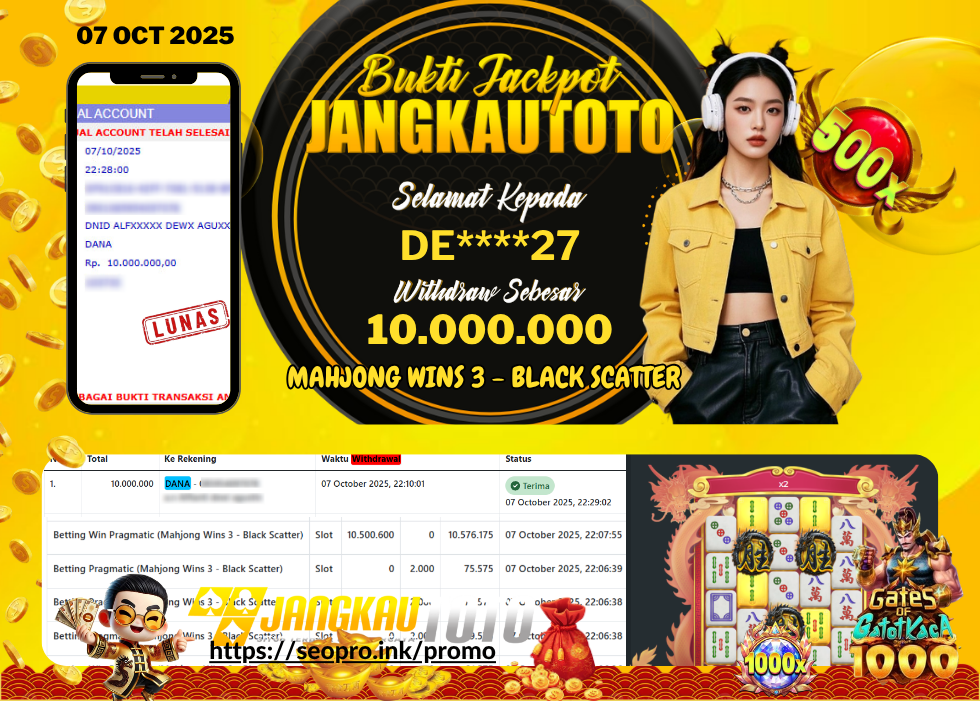 - JANGKAUTOTO JACKPOT SLOT Mahjong Wins 3 - Black Scatter Rp.10.000.000,- LUNAS