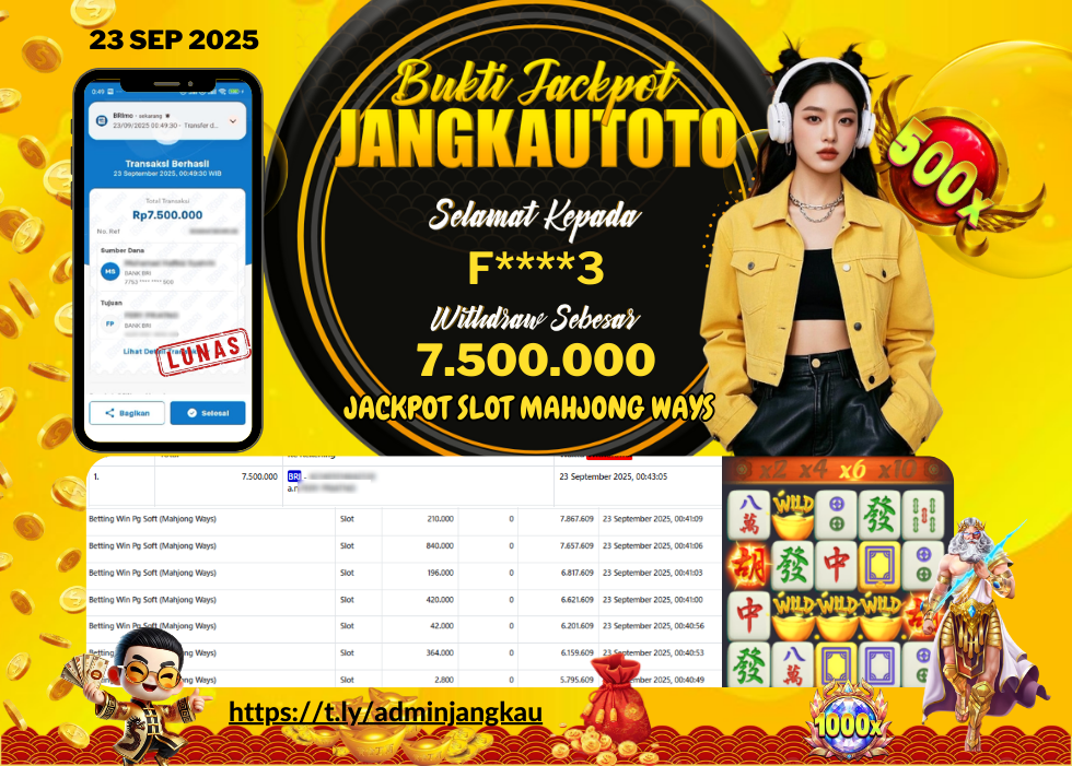Kami mengucapkan Selamat kepada member setia JANGKAUTOTO Dengan Username F*****3, JANGKAUTOTO JACKPOT SLOT PG SOFT Mahjong Ways Rp.7.500.000,- Telah diproseskan