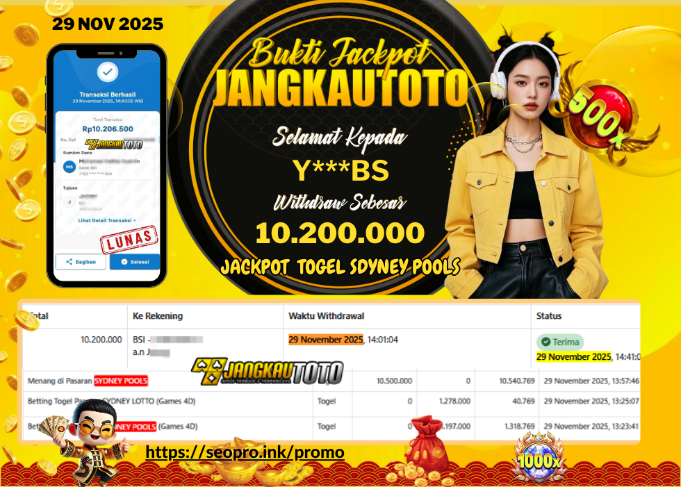Kami mengucapkan Selamat kepada member setia JANGKAUTOTO Dengan Username YU***S , Withdraw hasil JACKPOT T0G3L SDYNEY POOLS Sebesar Rp. 10.200.000,- Telah LUNAS diproses