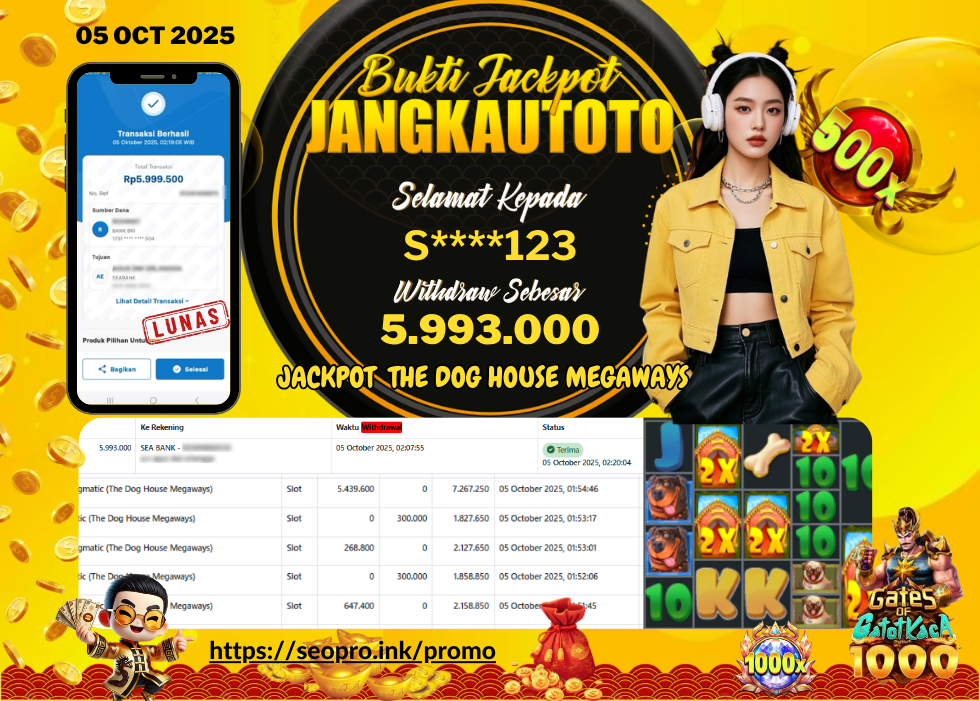 Kami mengucapkan Selamat kepada member setia JANGKAUTOTO Dengan Username S****123 , JANGKAUTOTO JACKPOT The Dog House Megaways Rp.5.993.000,- LUNAS Telah diproseskan
