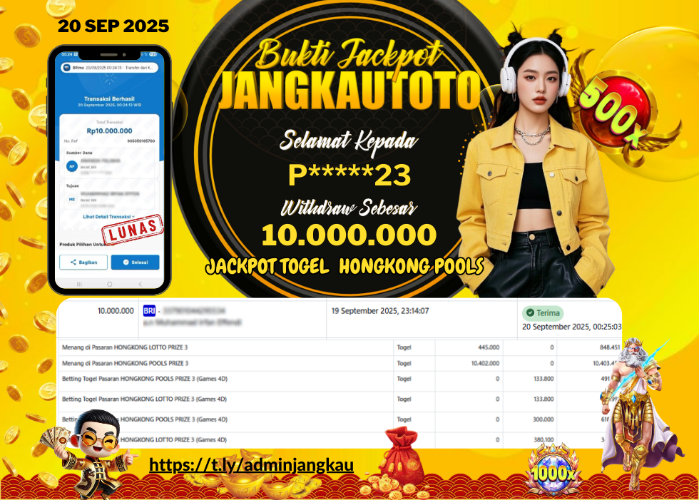 Kami mengucapkan Selamat kepada member setia JANGKAUTOTO Dengan Username P****23 , JANGKAUTOTO JACKPOT TOGEL HONGKONG POOLS Rp.10.000.000,-Telah diproseskan