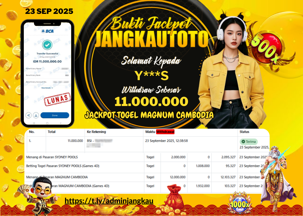 Kami mengucapkan Selamat kepada member setia JANGKAUTOTO Dengan Username Y***S, JANGKAUTOTO JACKPOT TOGEL Magnum Cambodia Rp.11.000.000,- Telah diproseskan