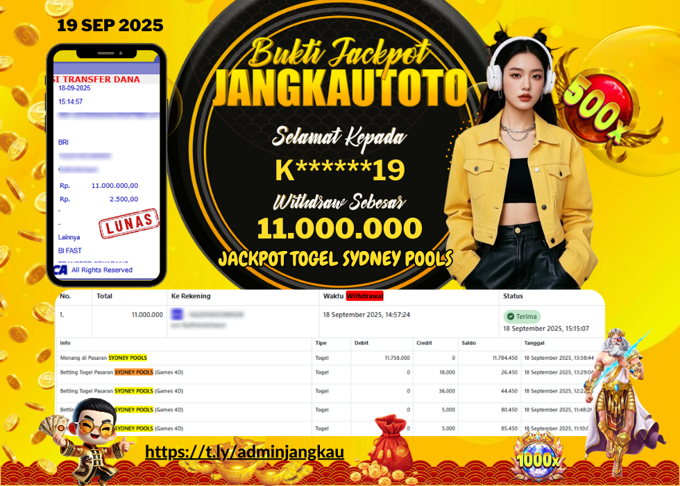 Kami mengucapkan Selamat kepada member setia JANGKAUTOTO Dengan Username K******19 , JANGKAUTOTO JACKPOT TOGEL SYDNEY POOLS Rp.11.000.000,- Telah diproseskan